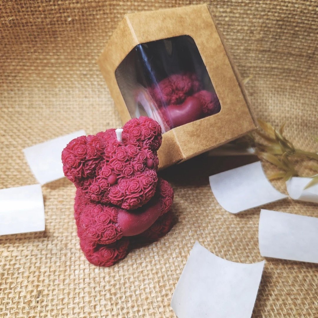Fall in love with the Teddy Bear Candle from Elysianflame—a handcrafted soy wax creation sculpted entirely from delicate rose blooms. This adorable teddy bear holds a heart in its paws, symbolizing warmth, affection, and timeless love, making it a heartfelt gift for Valentine’s Day, anniversaries, or self-care rituals.